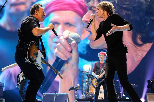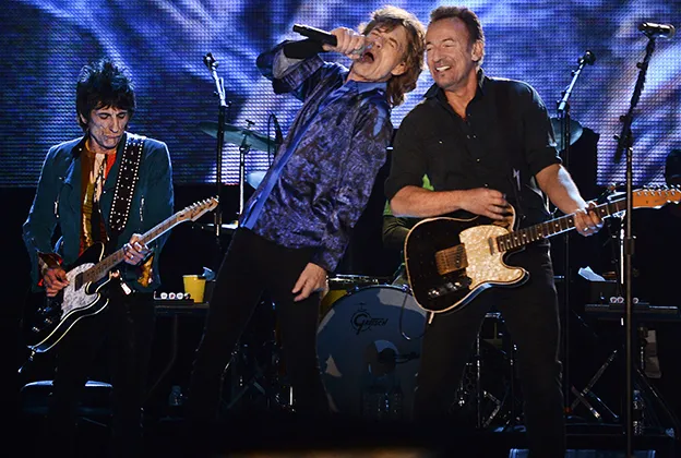Springsteen and the Stones sharing a stage? Hardly a first. Flash back to December 2012: Newark’s Prudential Center, the Stones’ star-studded blowout beamed live on pay-per-view. Bruce leaped out for—you guessed it—”Tumbling Dice,” rubbing shoulders with guests like Lady Gaga, the Black Keys, and Stones alum Mick Taylor. The air crackled with history.