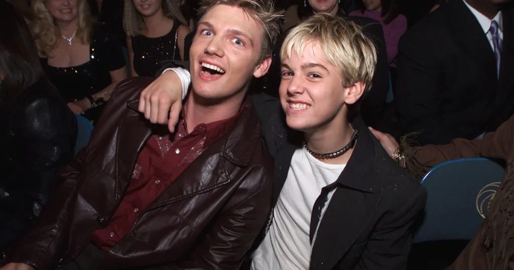 Nick Carter, visibly overcome with emotion, stood beside his bandmates as images of Aaron lit up the big screens. The photos showed Aaron as the world first knew him — the bright-eyed teen pop star with an infectious smile, growing up alongside his brother’s band.
