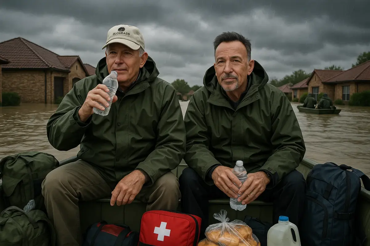 Kerrville, TX — In the wake of catastrophic flash floods that ravaged Kerr County and surrounding areas, two of America’s most beloved musicians — The Boss Bruce Springsteen and The King of Country George Strait — have joined forces on the ground to deliver not just much-needed supplies, but also a powerful message of solidarity to the devastated communities.