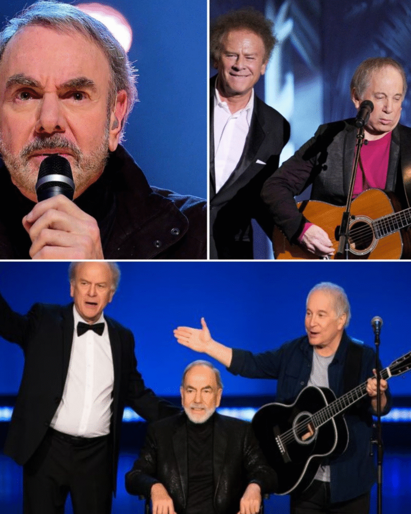 At the heart of it all was Neil Diamond. Though his body has been slowed by Parkinson’s disease and he was brought on stage in a chair, his spirit still burned with the same fire that once carried Sweet Caroline into stadiums and into America’s collective memory. The crowd held its breath as he was rolled toward the microphone. Waiting for him were Paul Simon and Art Garfunkel — men who themselves had lived through decades of friendship, silence, and reconciliation.