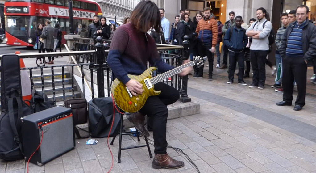 On a bustling day at Oxford Circus in London, Miguel graced the streets with his mesmerizing fingerstyle rendition of “Sultans Of Swing,” drawing passersby to a standstill with his remarkable performance. Captivated by his skillful playing, a bystander captured Miguel’s captivating street performance on video and shared it on YouTube. In no time, the 9-and-a-half-minute masterpiece of guitaring prowess went viral, captivating guitar enthusiasts worldwide. Experience the magic below:
